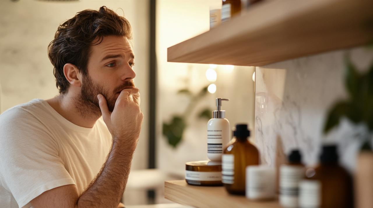 Le Finastéride représente une alternative médicamenteuse connue principalement pour son utilisation dans le traitement de la calvitie masculine. Ce médicament agit en inhibant l'enzyme qui convertit la testostérone en dihydrotestostérone, hormone impliquée dans la miniaturisation des follicules pileux. Toutefois, son utilisation pour la barbe reste moins documentée et plus controversée que pour le cuir chevelu, avec des résultats variables et des effets secondaires potentiels à considérer attentivement. D'autres actifs bio-technologiques comme le Capixyl, le Redensyl et le Baicapil émergent comme alternatives prometteuses dans les formulations de sérums capillaires. Ces substances combinent des peptides biomimétiques et des extraits végétaux conçus pour stimuler l'activité folliculaire et prolonger la phase de croissance. Bien que ces ingrédients soient principalement commercialisés pour les cheveux, leur application à la barbe suscite un intérêt croissant. Les marques comme Rogaine, version commerciale du Minoxidil, proposent des formulations en liquide ou en mousse, cette dernière étant préférable pour les peaux sensibles car elle évite généralement les agents potentiellement irritants comme l'alcool et le propylène glycol. Le coût de ces traitements varie entre 40 et 60 euros, représentant un investissement mensuel non négligeable sur le long terme.
